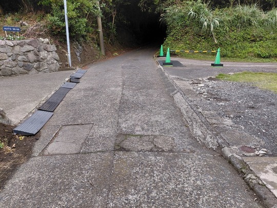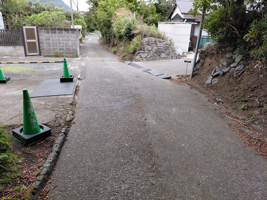 当宿前の道路は、道幅が極めて狭く、車両同士の行き違い(すれ違い)はできません。